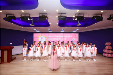 会议开始前,k1体育集团为参会的中关村二小学生带来了礼物,孩子们在翻阅中如同找到知己一般,喜悦溢于言表,因为她们看到了可爱的爱心大使元七七同学。当嘹亮的歌声响起,学生代表们在国旗下歌唱、宣言,散发出阵阵青春朝气,也预示着发布会开始。